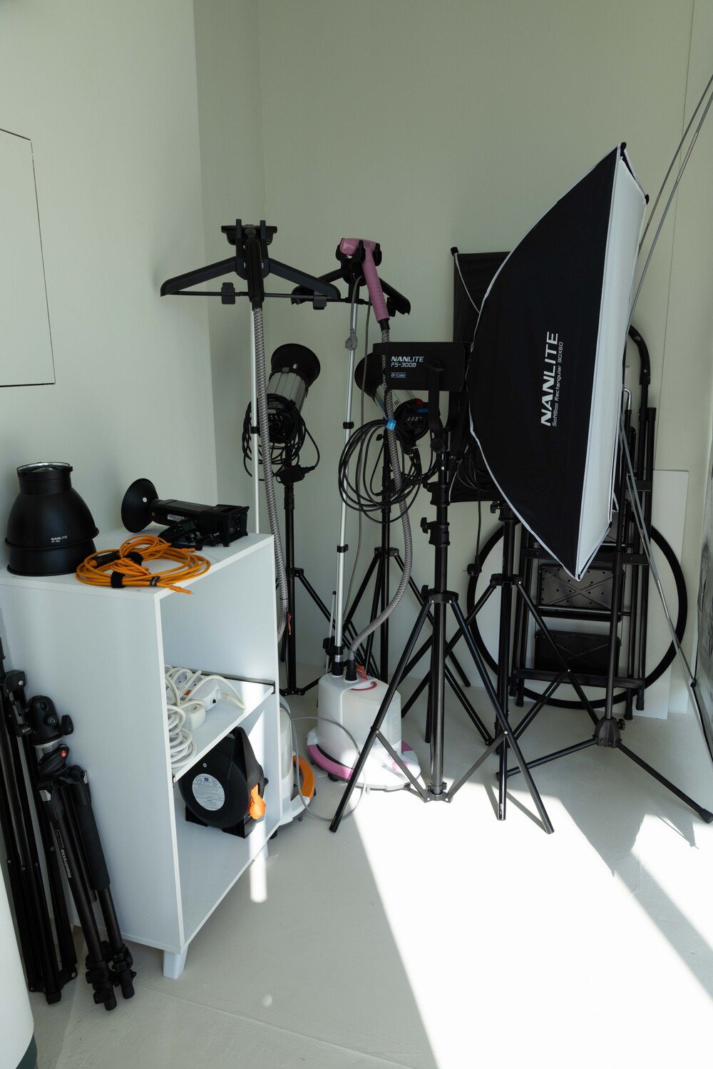 지속광(난라이트FS300B), 순간광(포맥스E600) 등 조명, 스탠드 연장선, 스팀다리미, 삼각대, 각종 반사판 등 기본 장비 무료 제공.